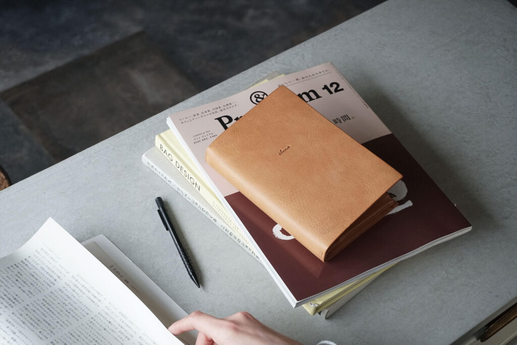 意外とぺたっと開かないものも多い、革のバインダー。そのあたりを、もっとノートみたいに気楽に使えたらいいな、というのが最初の考えでした。