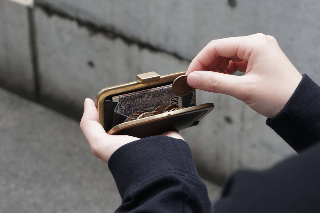 「ペティにぶら下げて可愛くて、500円玉が少し入るもの。」