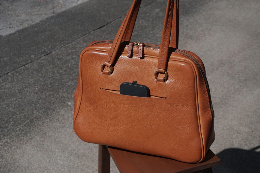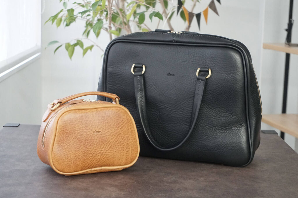 ぽてっとしている、と言うと可愛らしい感じがすると思うんですけど、鞄全体を見ると愛らしさとスタイリッシュな雰囲気のどちらも持っている、ちょっと面白い鞄なんです。