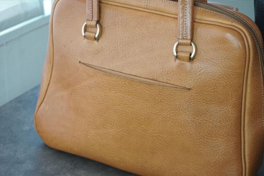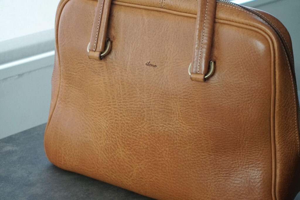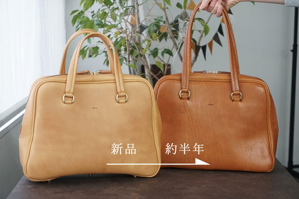 この大きさの鞄だと革の個性がしっかり出るので、仮にマスカルトートが大量に並んでいたとしても、私の子がわかると思います。