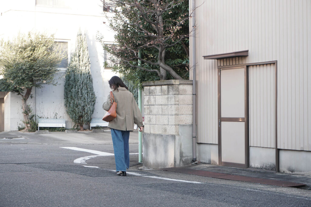 鞄の底には底鋲がついているので、地面に置いても傷がつきにくくて、実際に置くことも多々あるんですけど、長く歩く時とかには、どうしても肩掛けしたくなるんです。