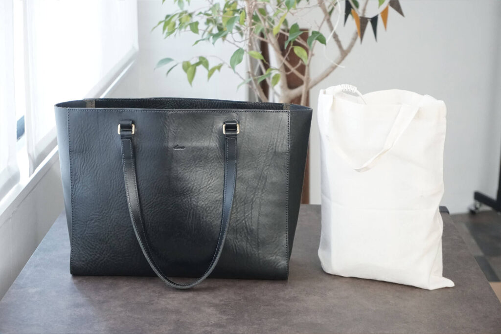 なので、『マスカル・トート』も一般的にイメージするトートバッグよりも、ややぽてっとした感じになっていると思います。