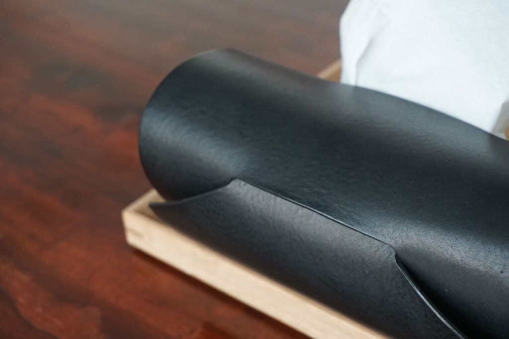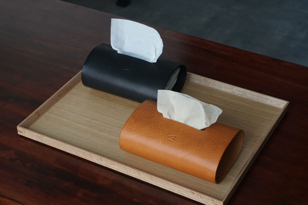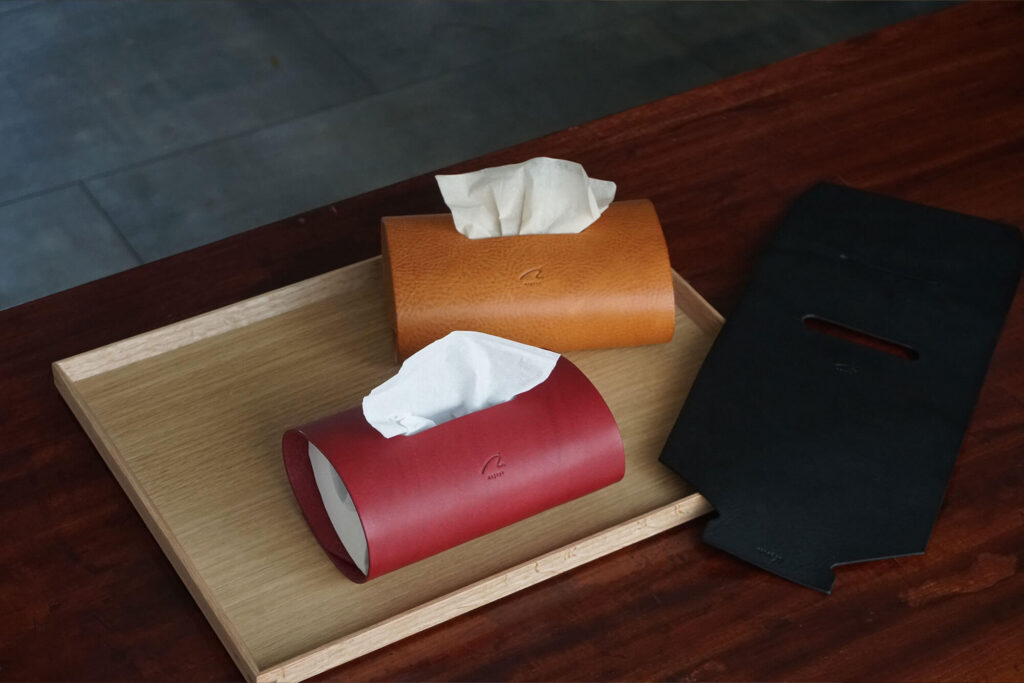 一枚革を差し込むだけで組み立てられる、シンプル&ミニマル、他にないデザインのティッシュケースをご用意しました。