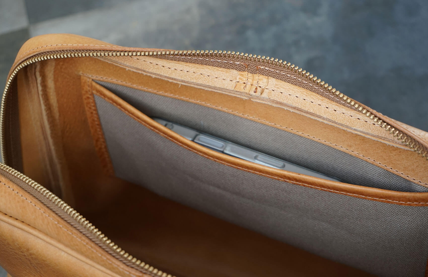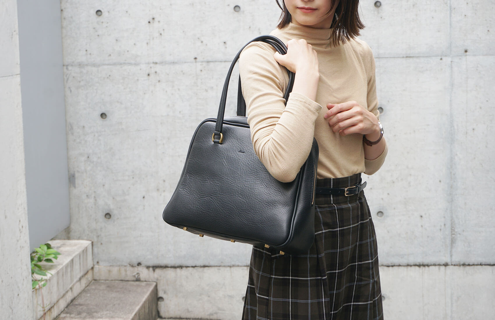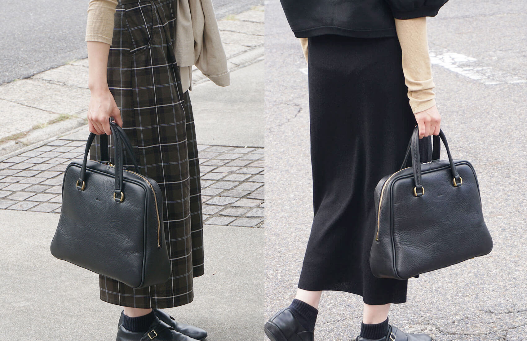 ファスナー式で安心のA4サイズ設計。奥行きもしっかりあるのでお仕事にはもちろん、カジュアルな日常のお出かけにも活躍します。シンプルながら、バランスを何度も調整して仕立てた美しいシルエットが魅力です。