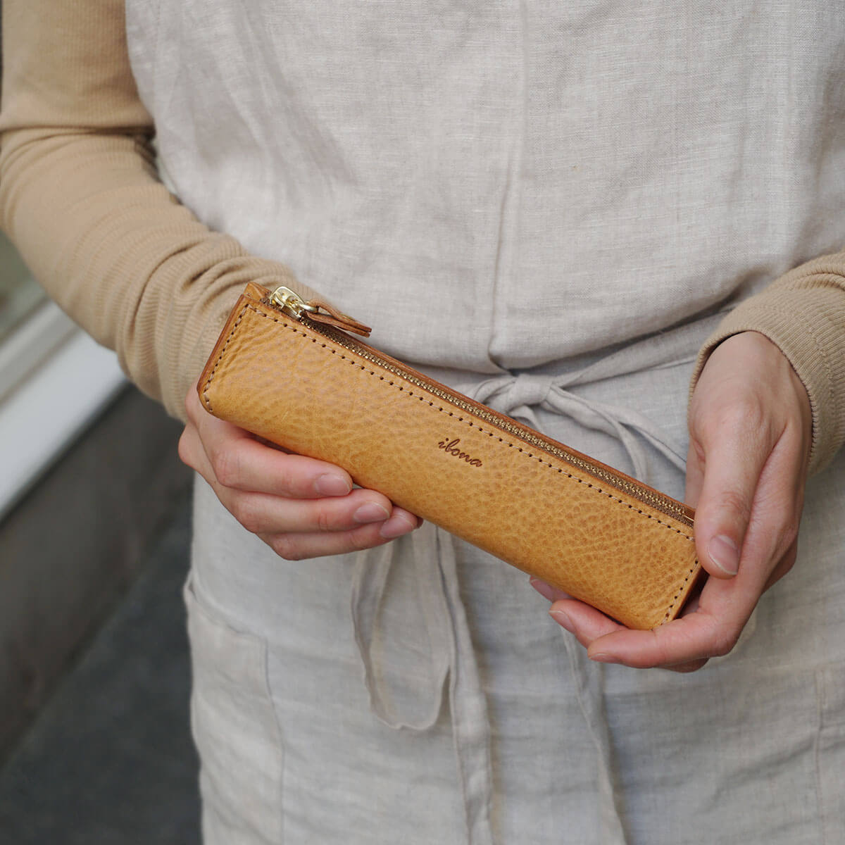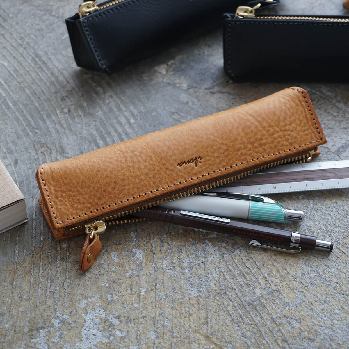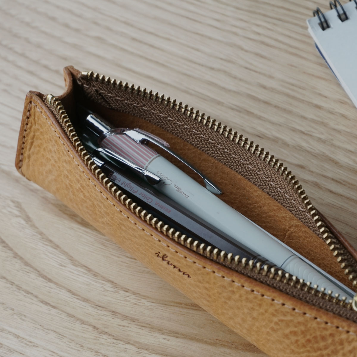 必要なペンだけをそっと収められる、小さめのファスナー式ペンケース。