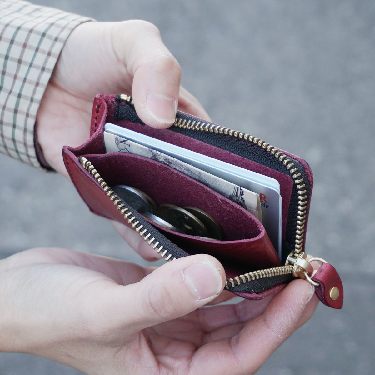 2025春に登場した限定商品の『L-zipミニモ・ウォレット』を秋冬限定のプラムで製作しました。