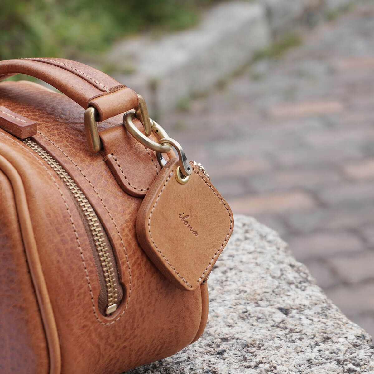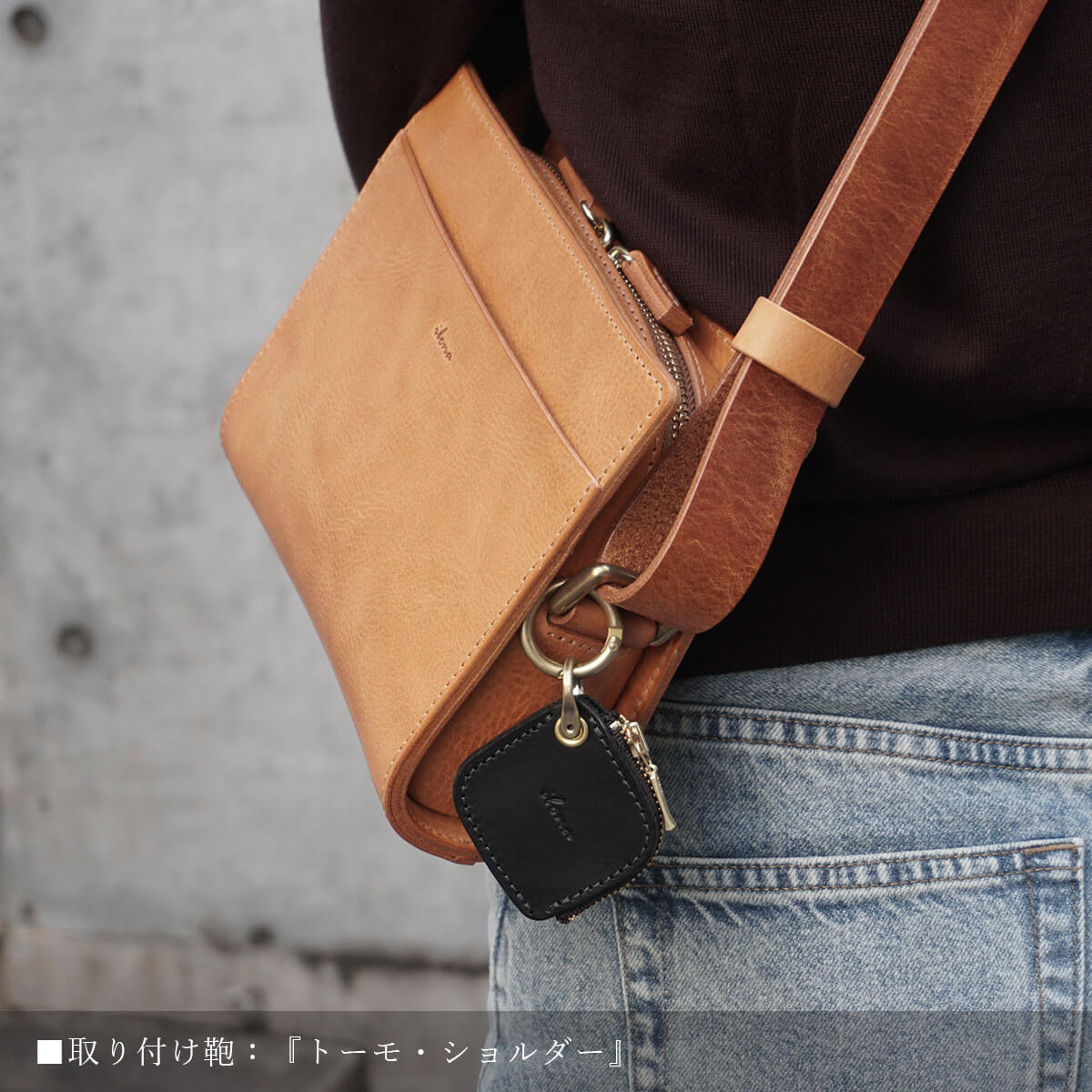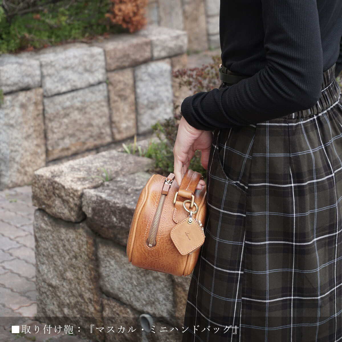 『ペティ・ポーチ(マキシマム)』に合わせて作った小さなサイズ感と、四角でも丸でもない絶妙な形がシンプルな鞄にさり気ないアクセントを添えてくれます。