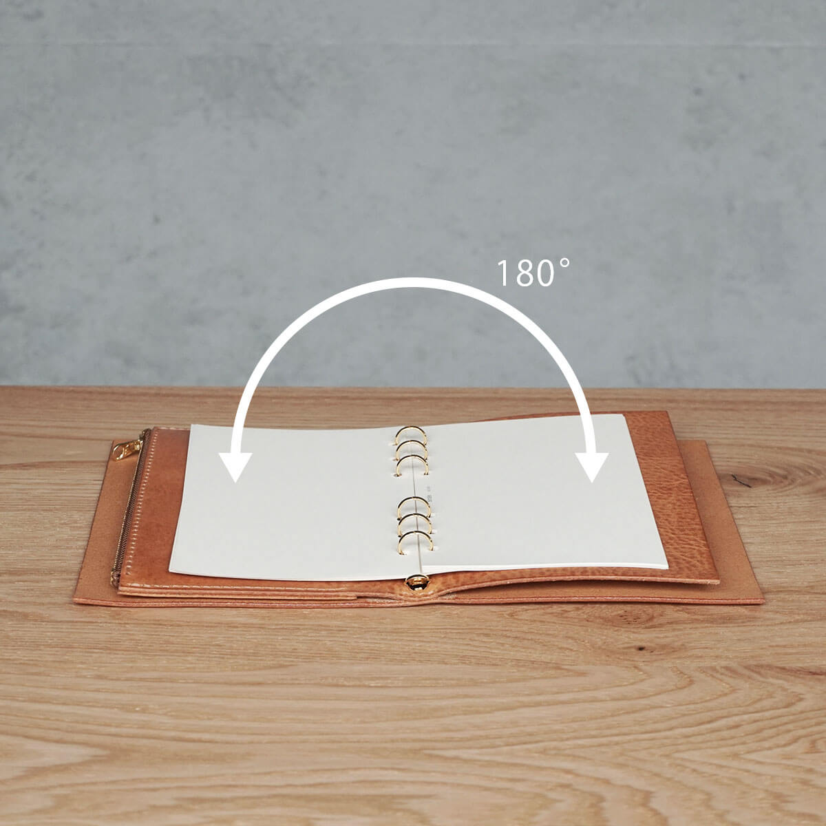 バインダーでありながら、ノートのようにぺたっと180度開くのも大きな特徴です。